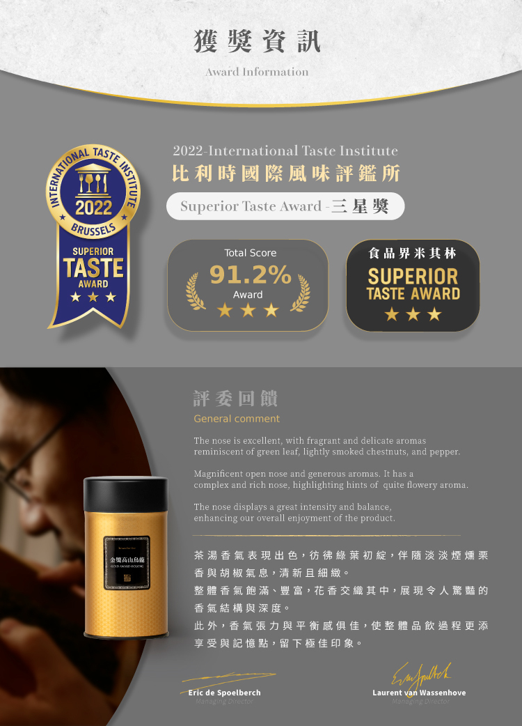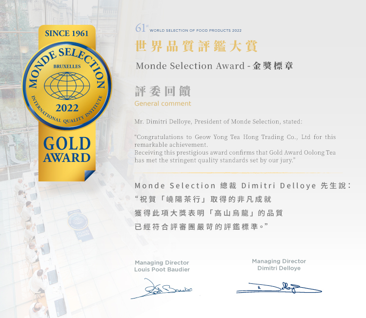 ◆ 2022年榮獲世界品質評鑑大賞金獎